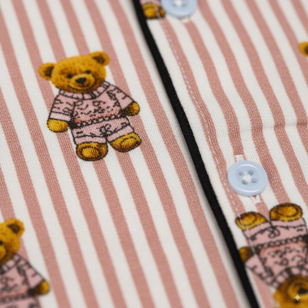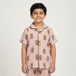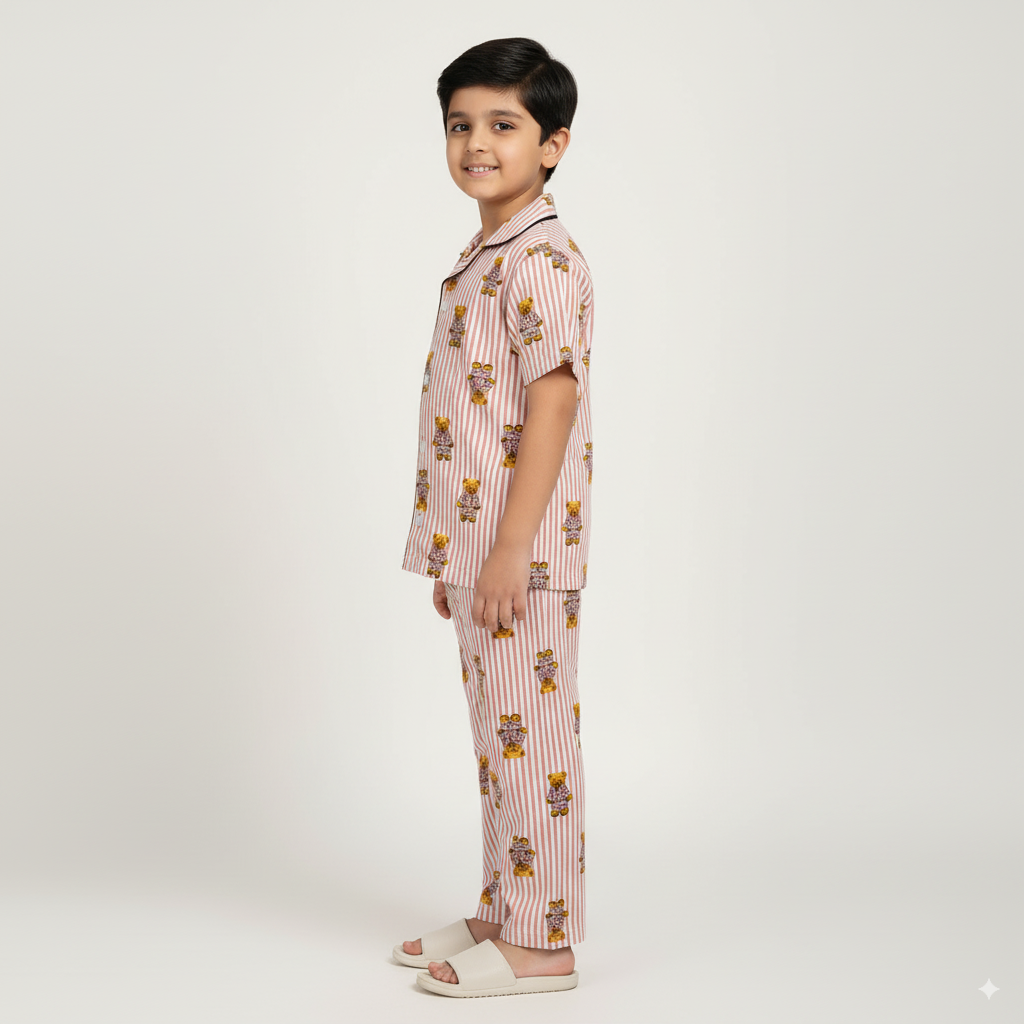 Pink Teddy Print Kids Night Suit - Half Sleeve Shirt and Full Pant