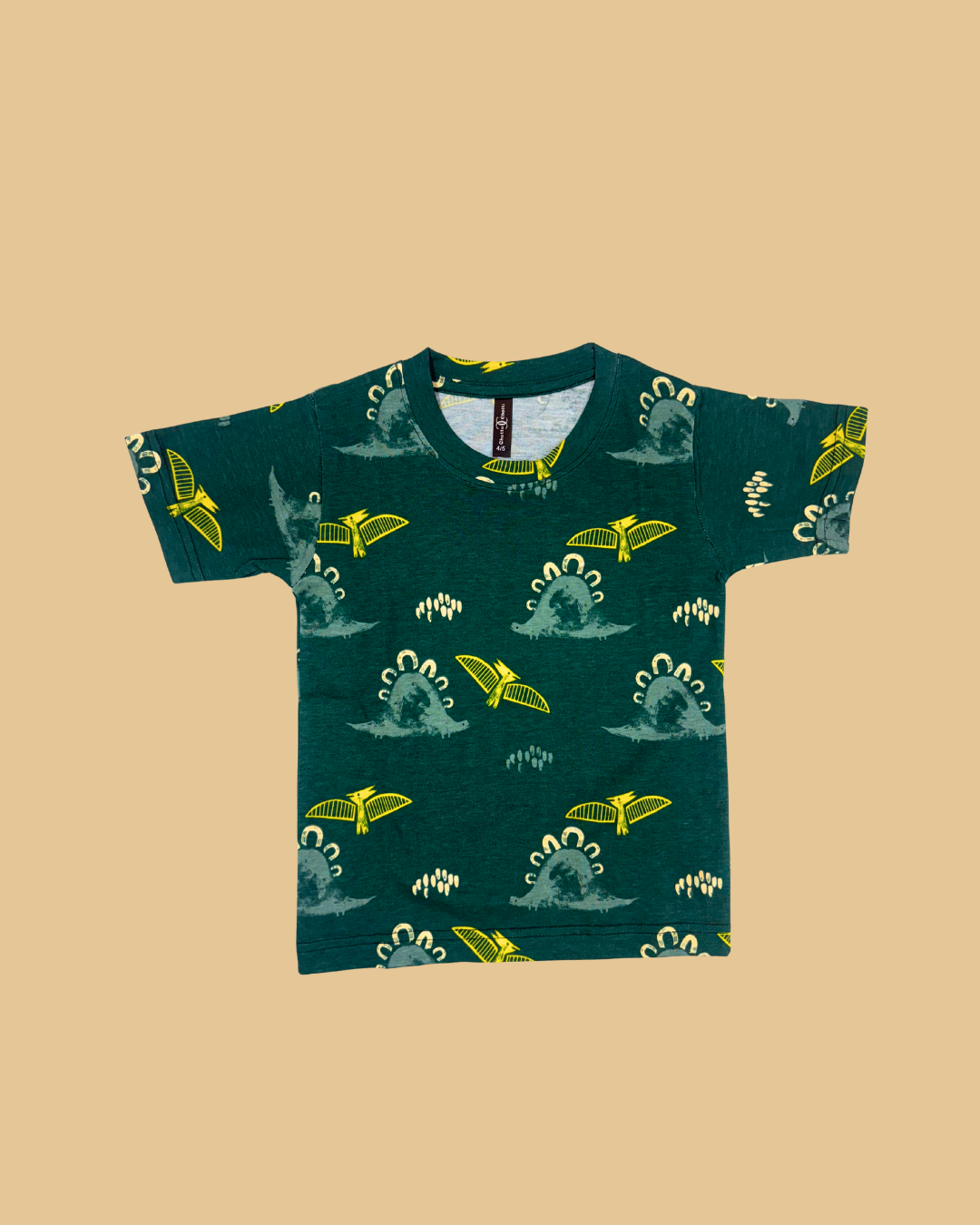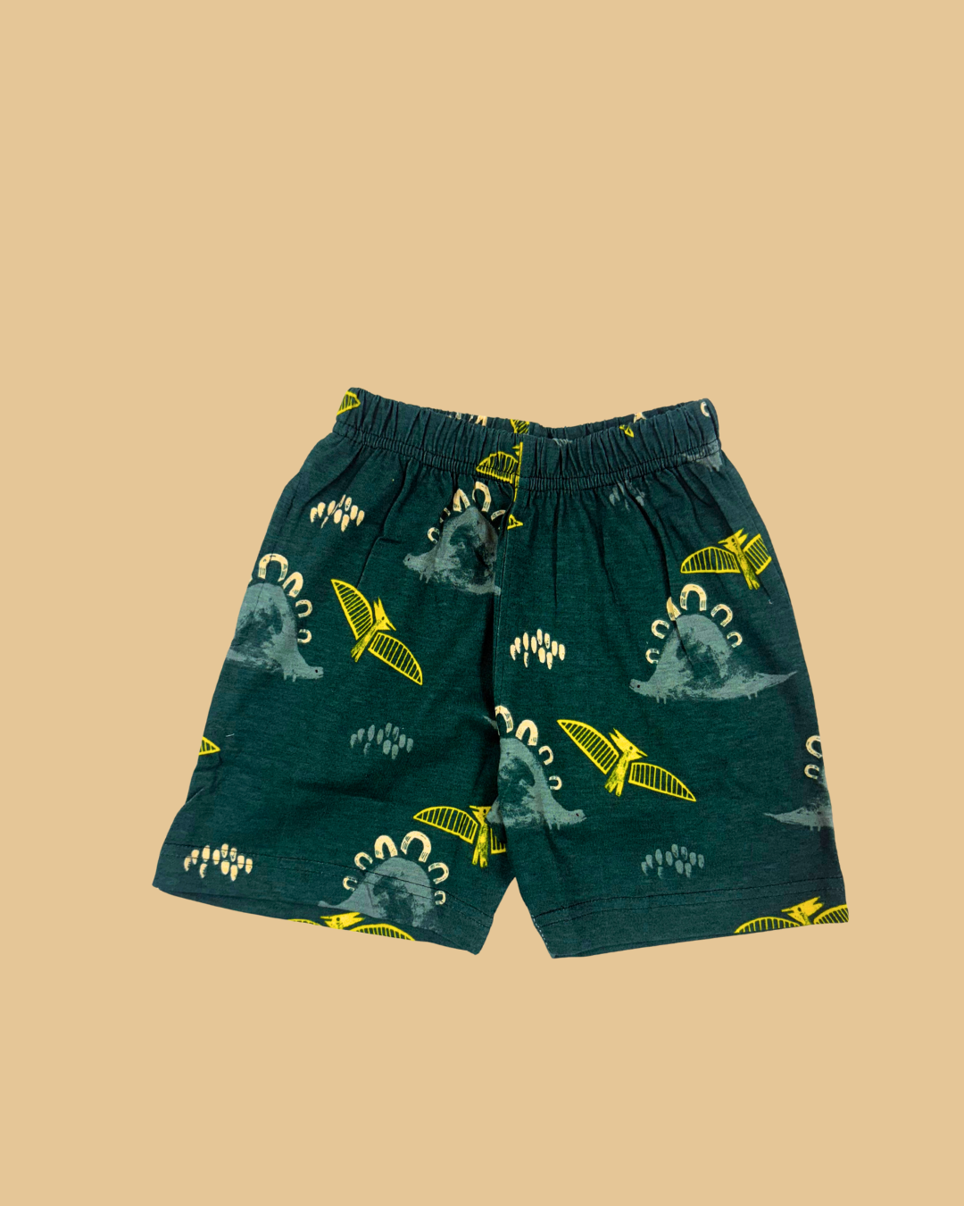 Green Dino Print Kids Shorts Coord Set (Unisex) - Shorts with Single Side Packet