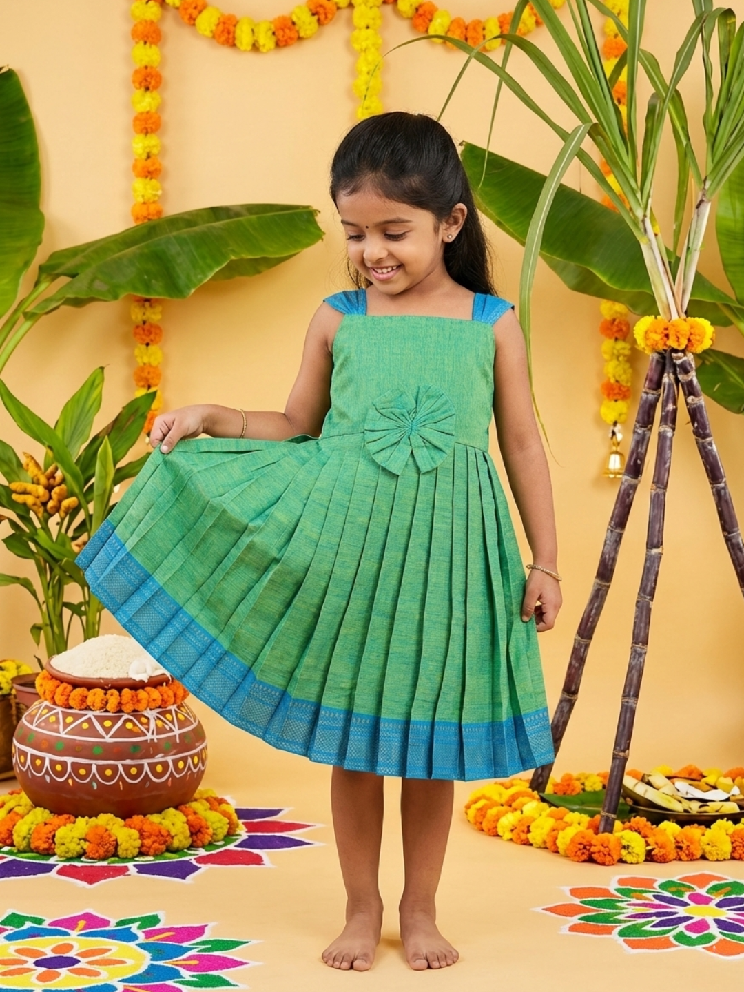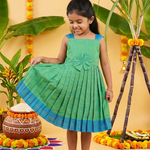 Introducing our beautifully tailored sleeveless Mangalagiri Cotton Frock, designed for little girls to shine on festive occasions and special days.