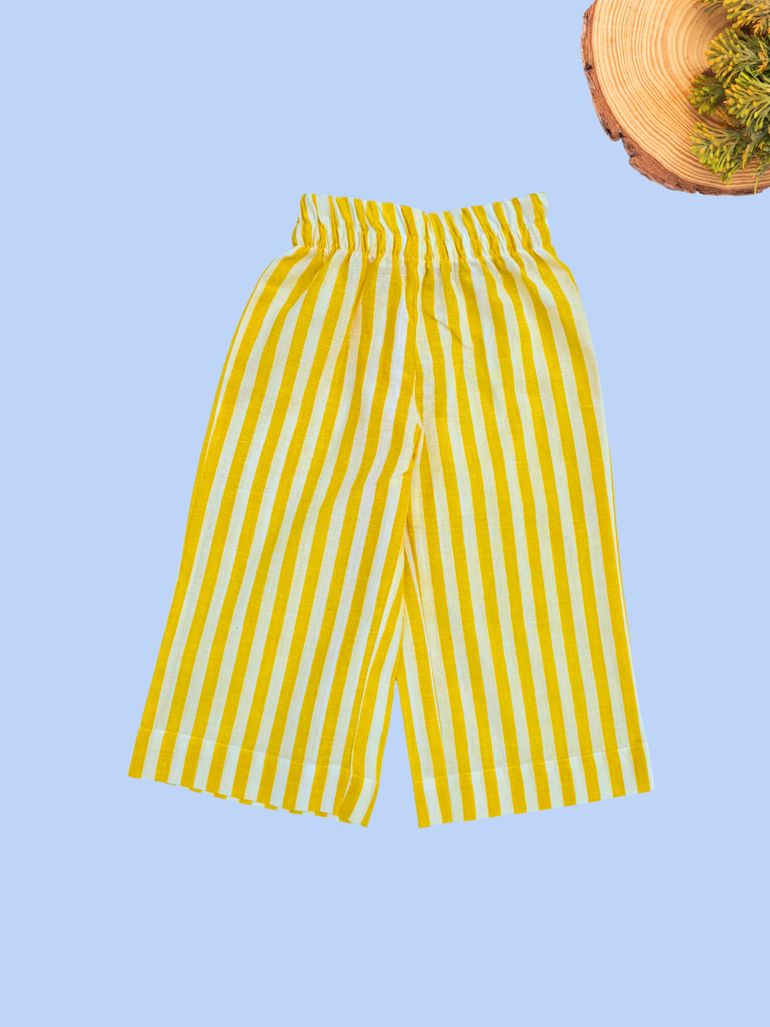 The sleeveless top features a trendy square neckline with cute shoulder knot detailing and a flared peplum-style hem, giving it a stylish yet breathable fit. Paired with comfortable matching striped pants with an elasticated waistband, this co-ord ensures ease of movement and all-day comfort.