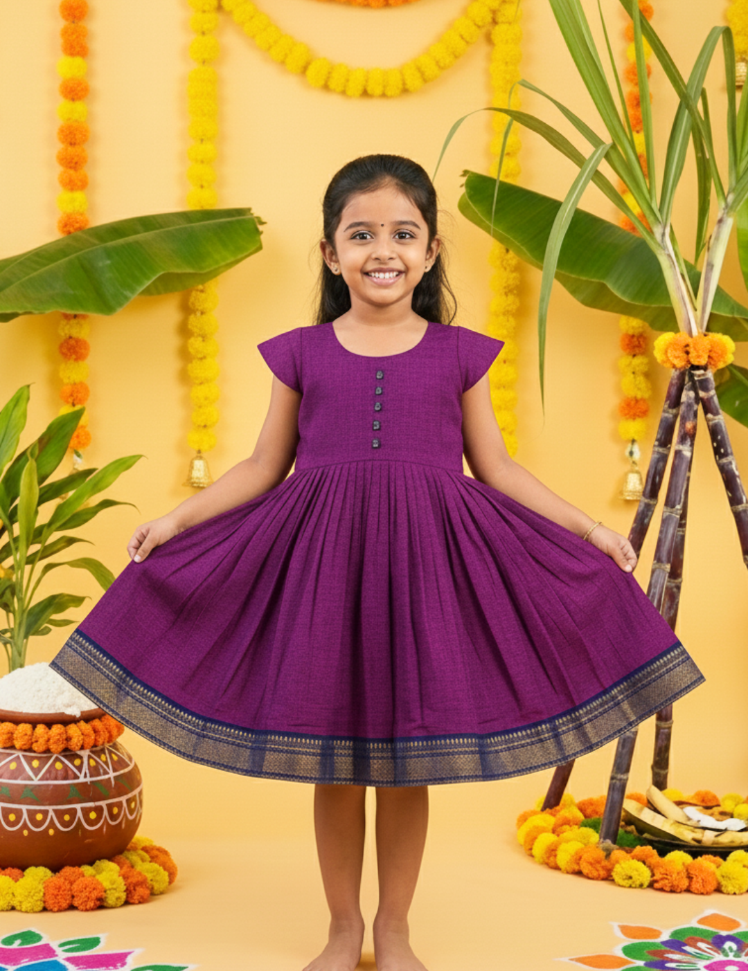 Tharagai Mangalagiri Cotton Frock | Ethnic Cap Sleeves Frock with Soft Lining
