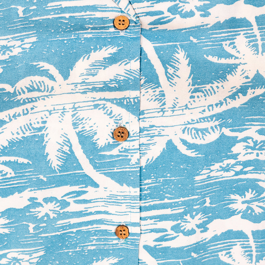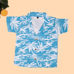 Tropical Blue Seashore Boys Printed Half Sleeve Shirt with Shorts | Cuban Collar Shirt & Shorts Set