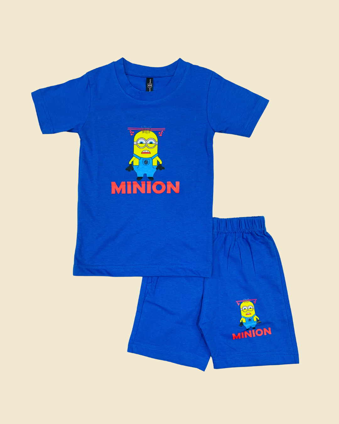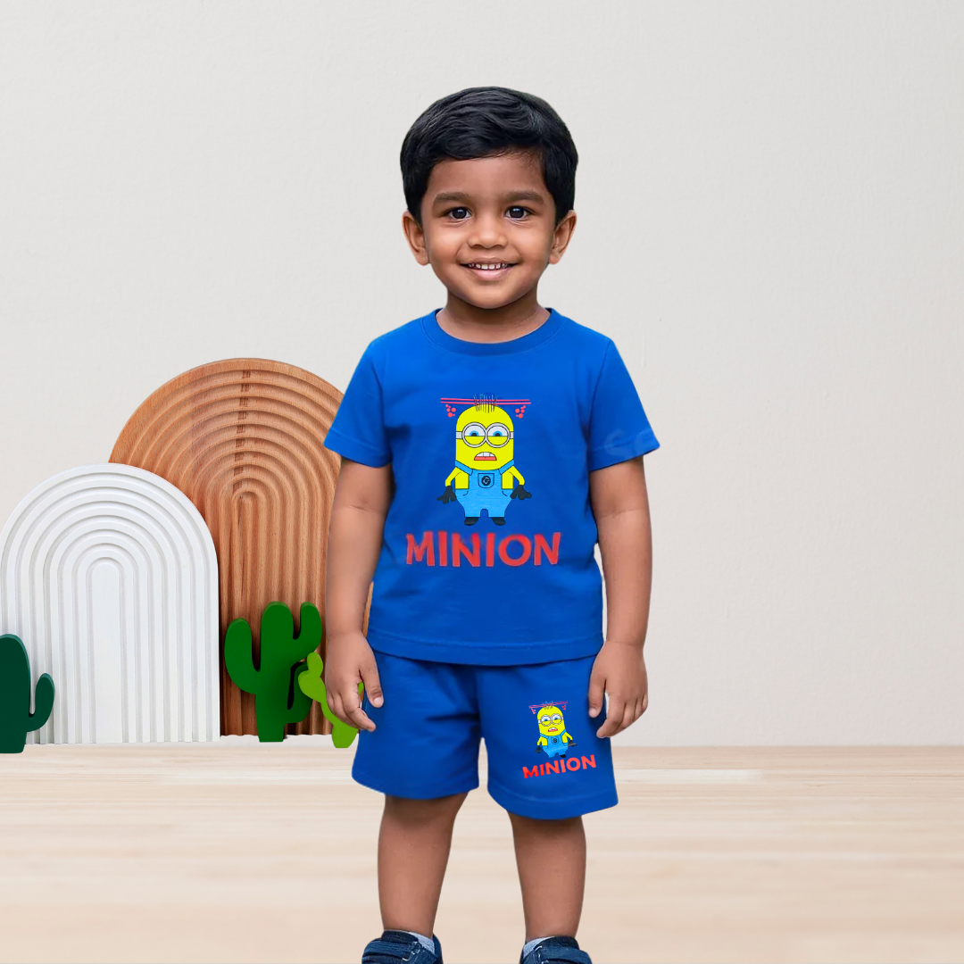 Blue Minion Print Kids Shorts Coord Set (Unisex) - Shorts with Single Side Packet