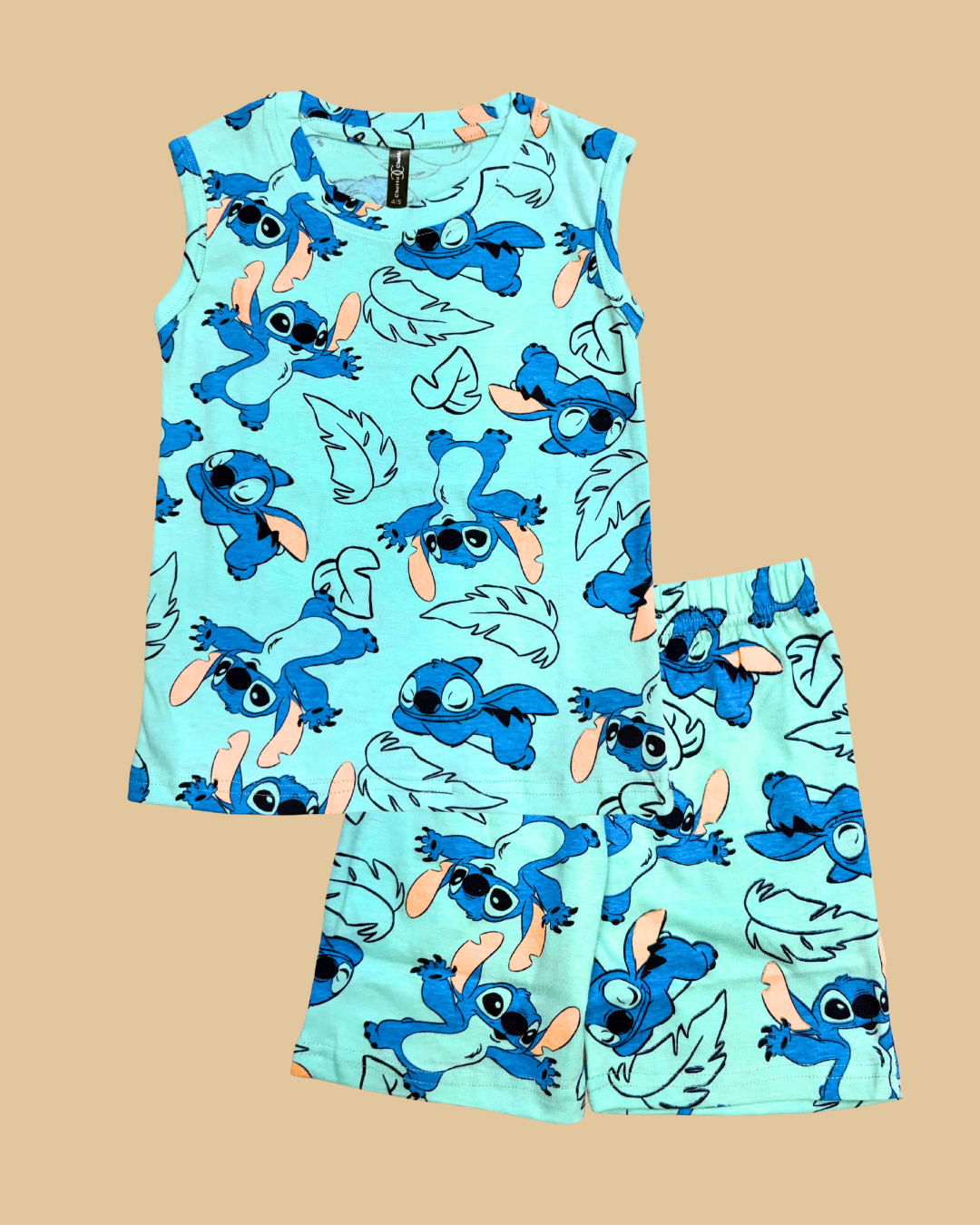 Lilo Print Kids Sleeveless T-Shirt Shorts Set (Unisex)