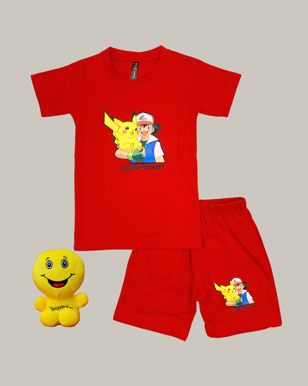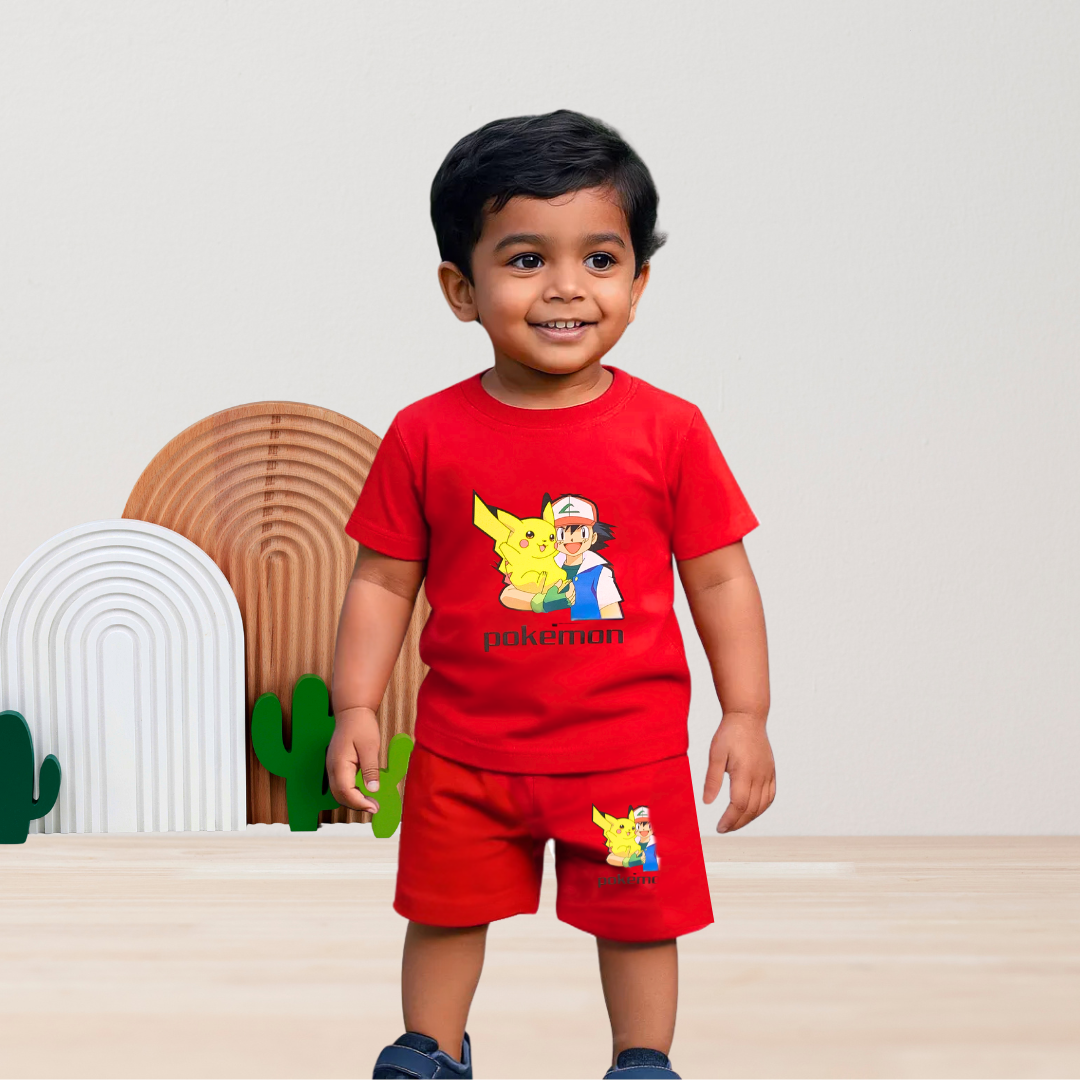 Red Pokemon Print Kids Shorts Coord Set (Unisex) - Shorts with Single Side Packet