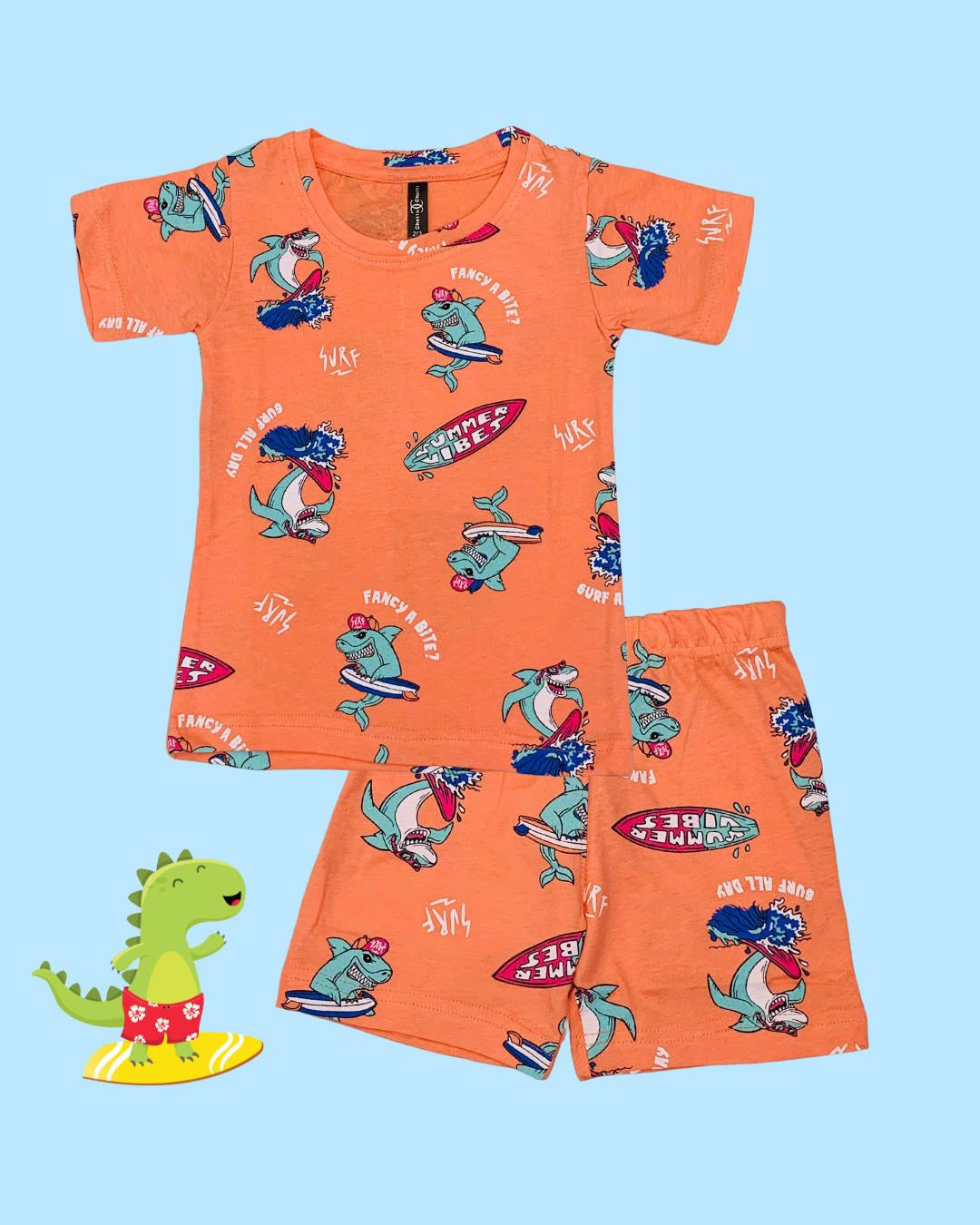Surf Dino Kids Shorts Coord Set (Unisex) - Shorts with Single Side Packet