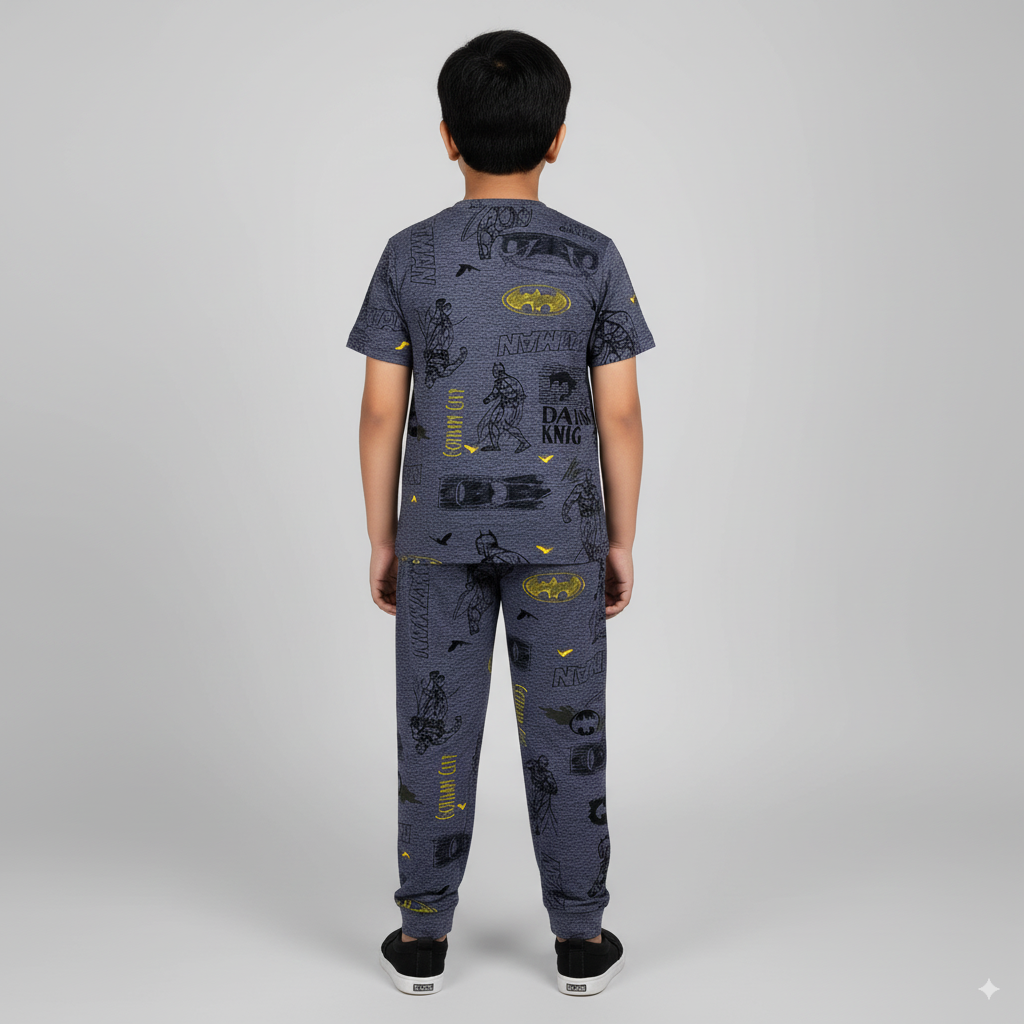 Batman Print Half Sleeve Kids Coords (Unisex) - Half Sleeve T-Shirt and Full Pant