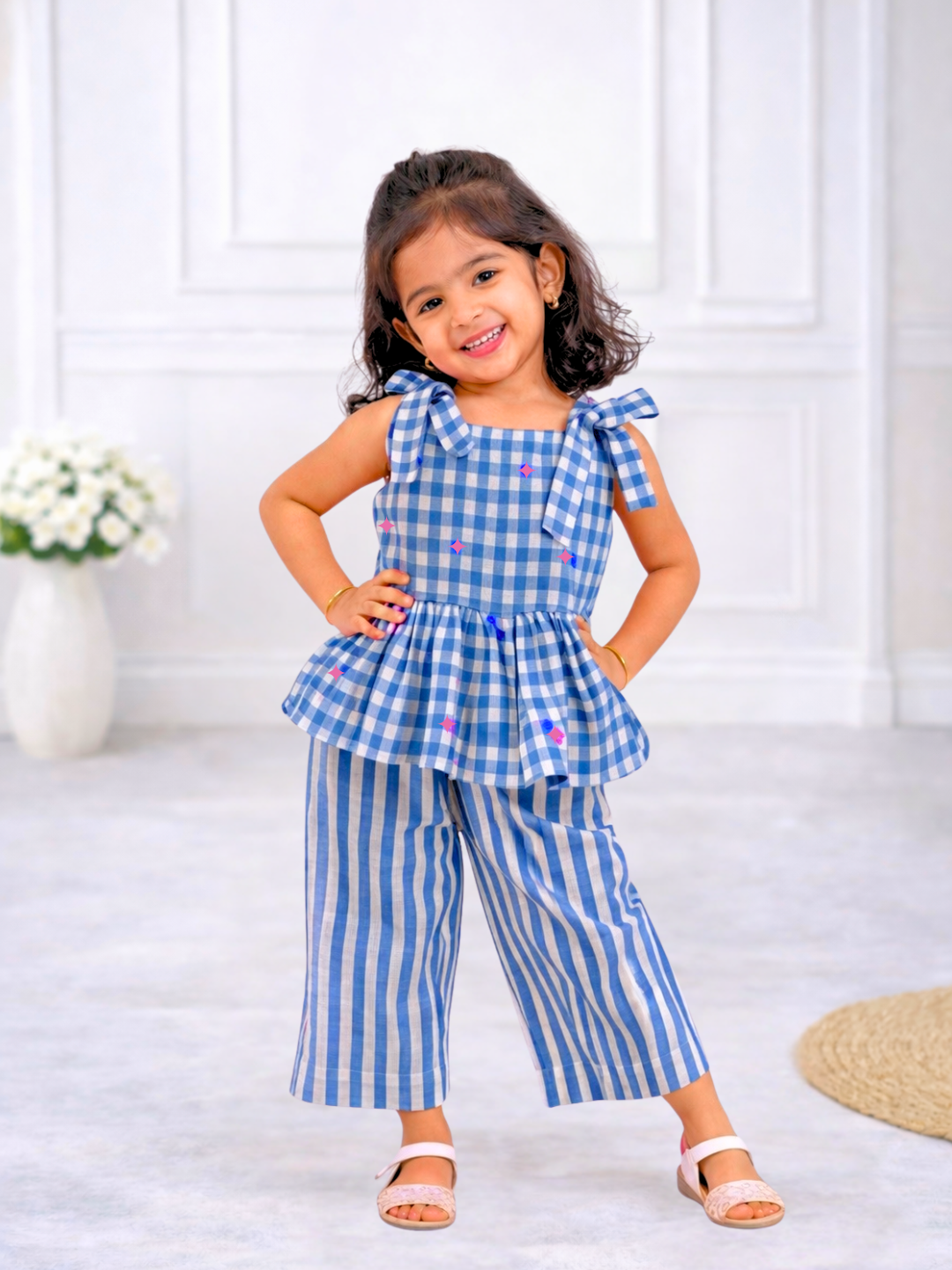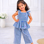 Blue Checks Sleeveless Co-ord Set - Sleeveless top with shoulder knot (Preorder - Dispatch from 21-4-26)