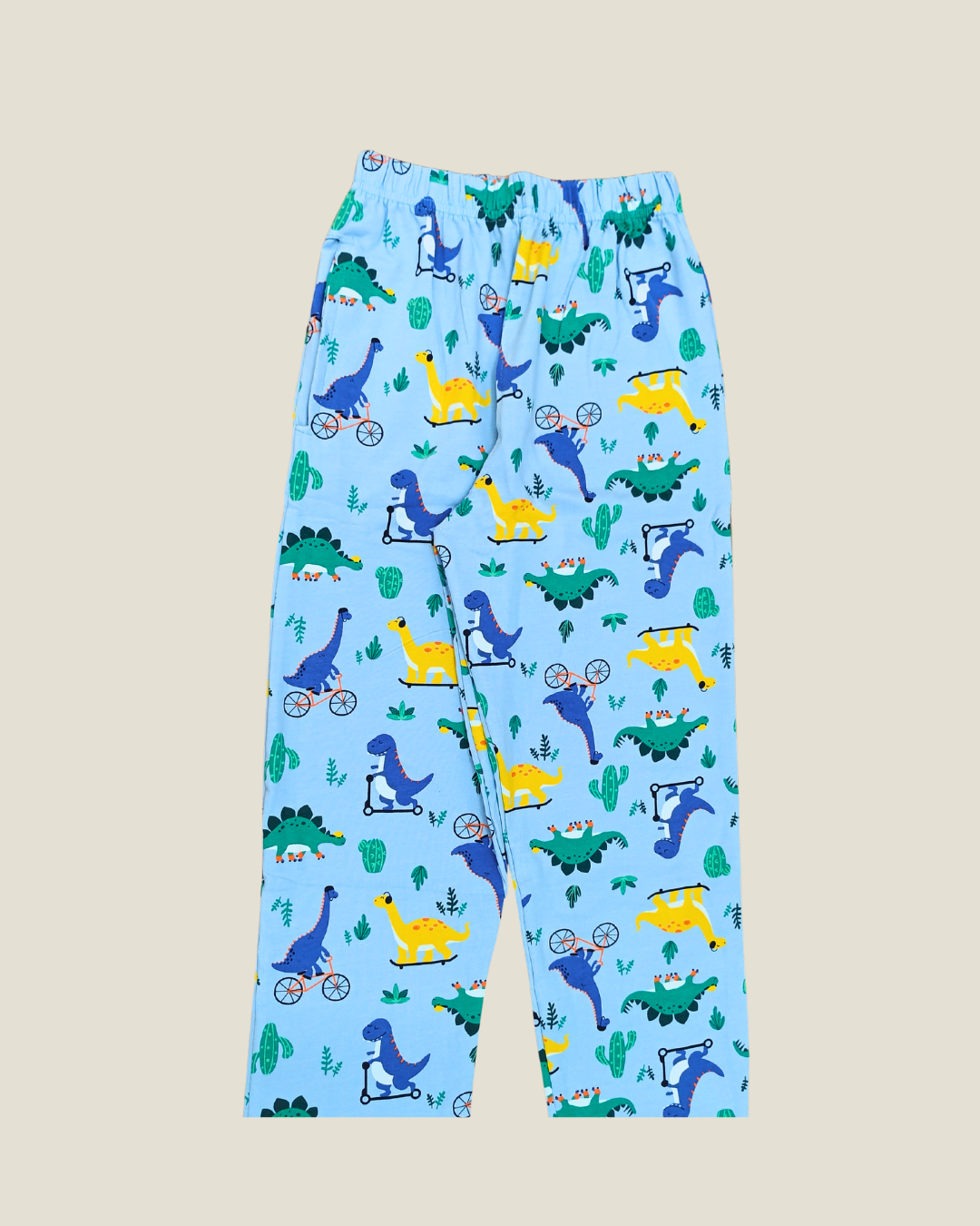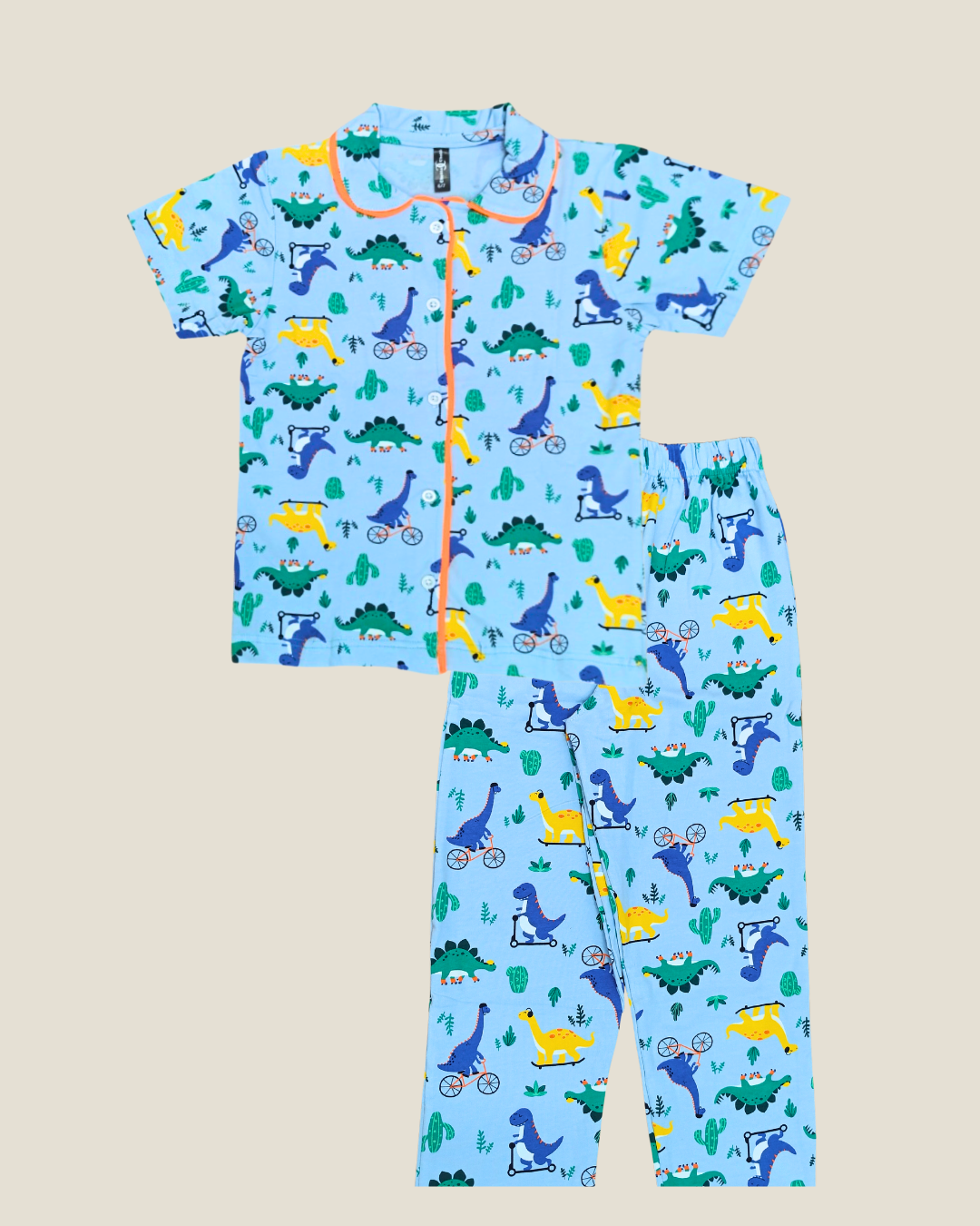Blue Dinos Print Kids Night Suit - Half Sleeve Shirt and Full Pant