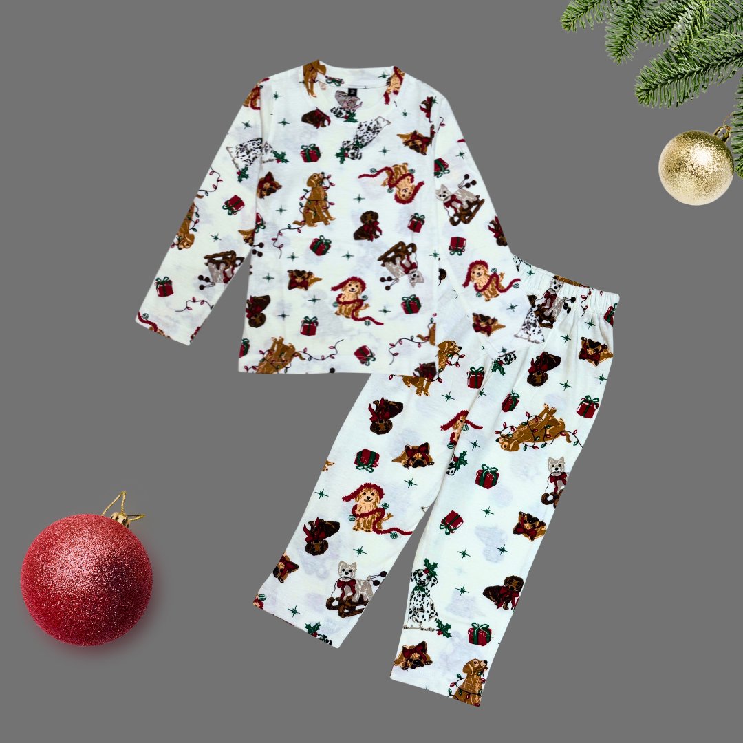 Christmas Puppy Full Sleeve Kids Coord Set (Unisex) - Full Sleeve T-Shirt and Full Pant