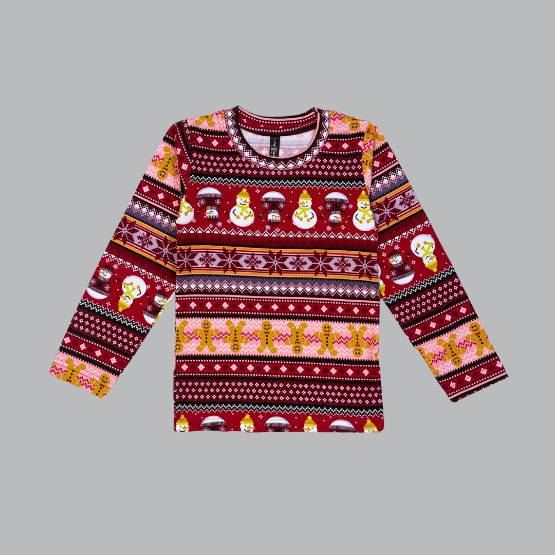 Christmas Snowman Fairisle Full Sleeve Kids Coord Set (Unisex) - Full Sleeve T-Shirt and Full Pant
