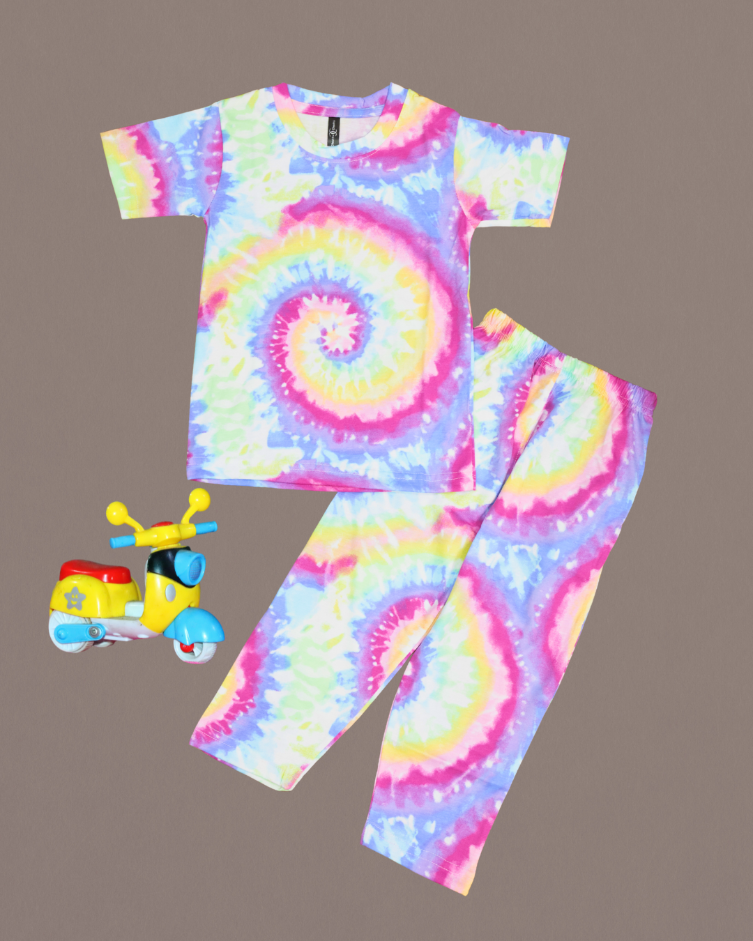 Colorful Tie Dye Kids Coords (Unisex) - Half Sleeve T-Shirt and Full Pant