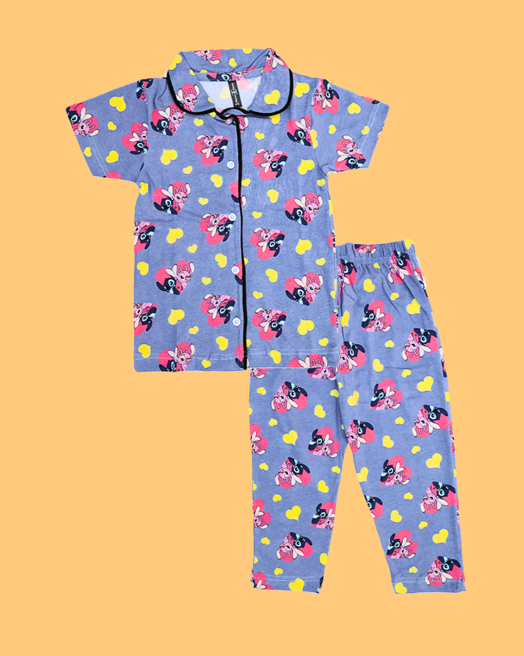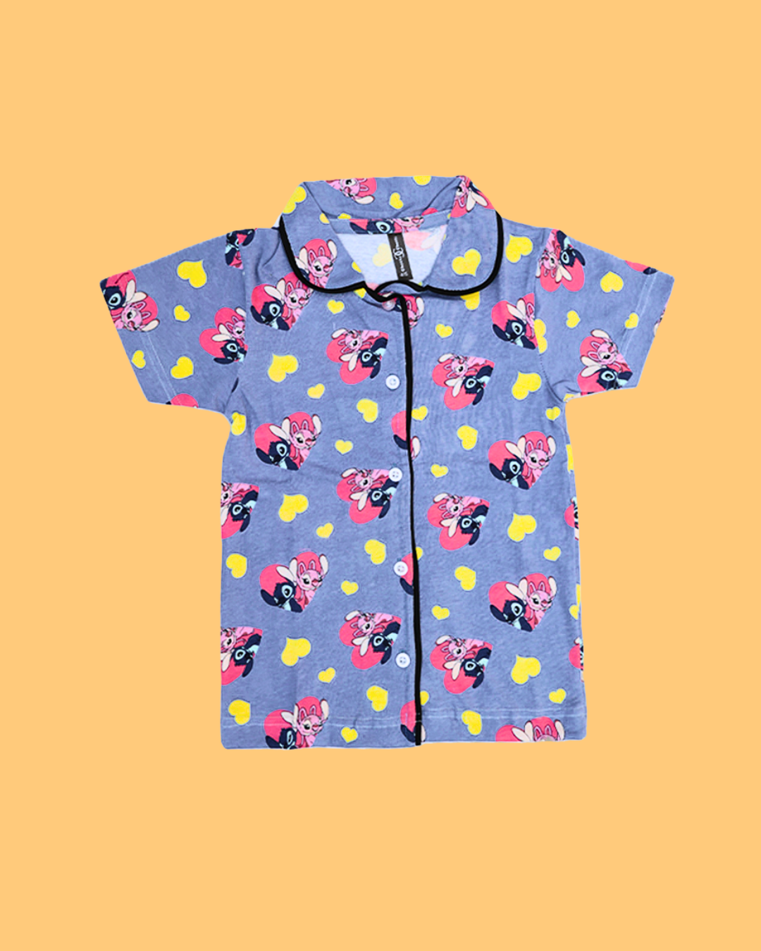 Heart Lilo Stitch Kids Night Suit - Half Sleeve Shirt and Full Pant