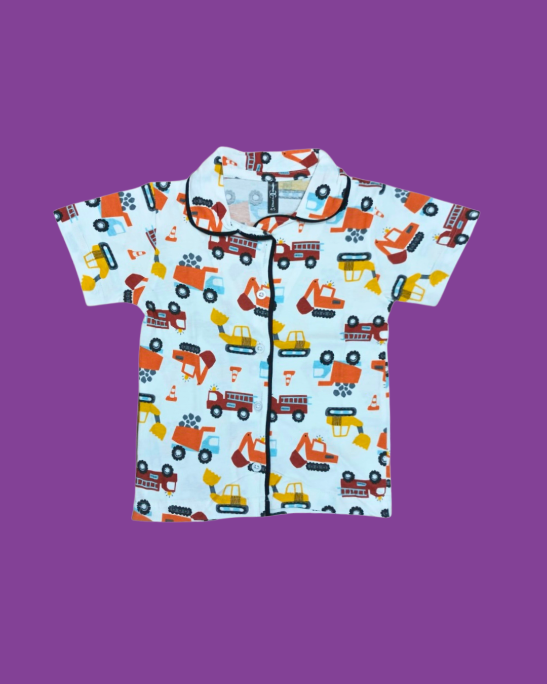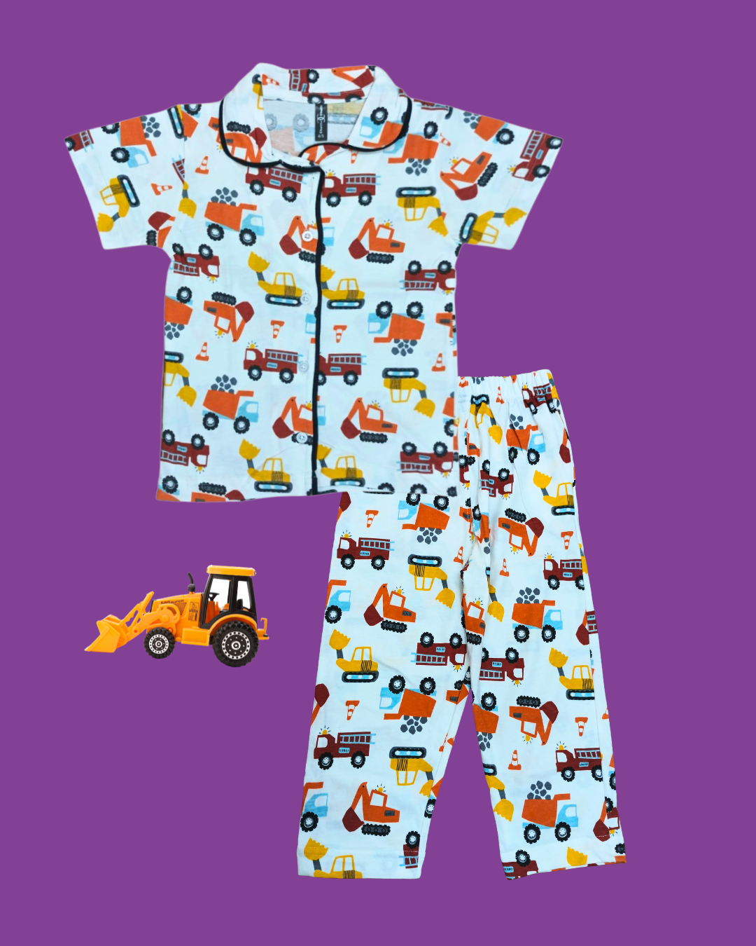 JCB Print Kids Night Suit - Half Sleeve Shirt and Full Pant