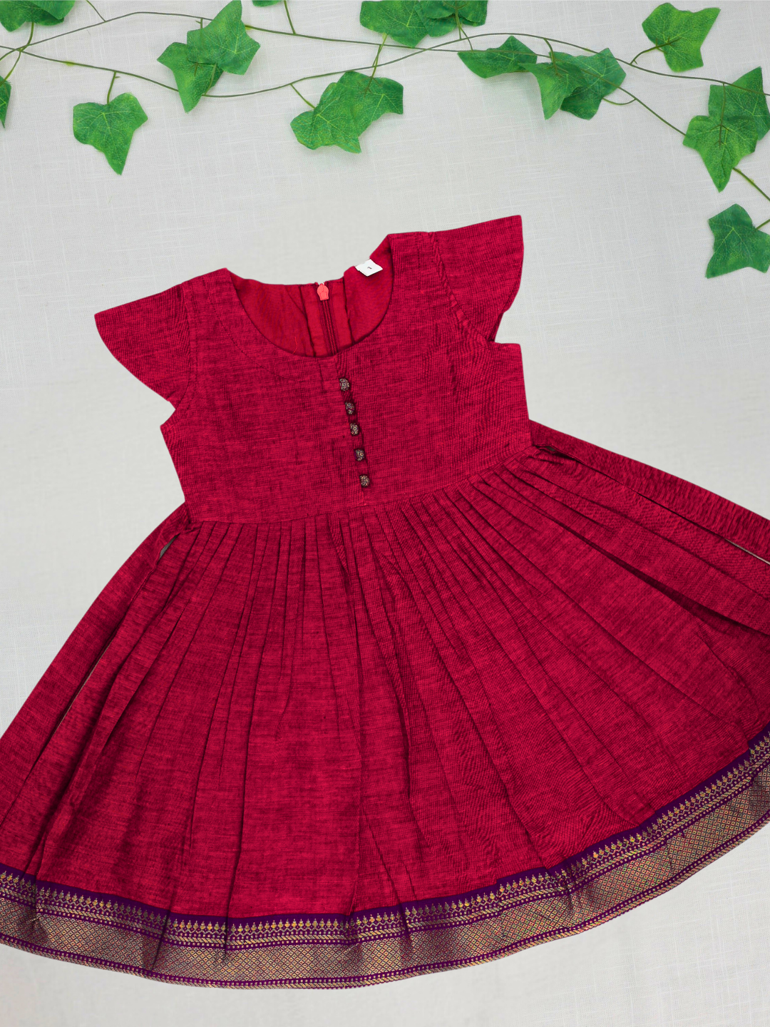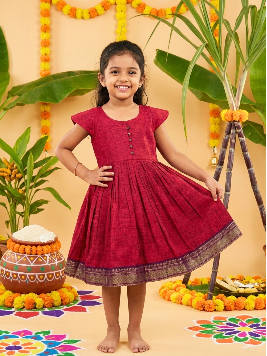 Introducing our beautifully tailored cap sleeves Mangalagiri Cotton Frock, designed for little girls to shine on festive occasions and special days.