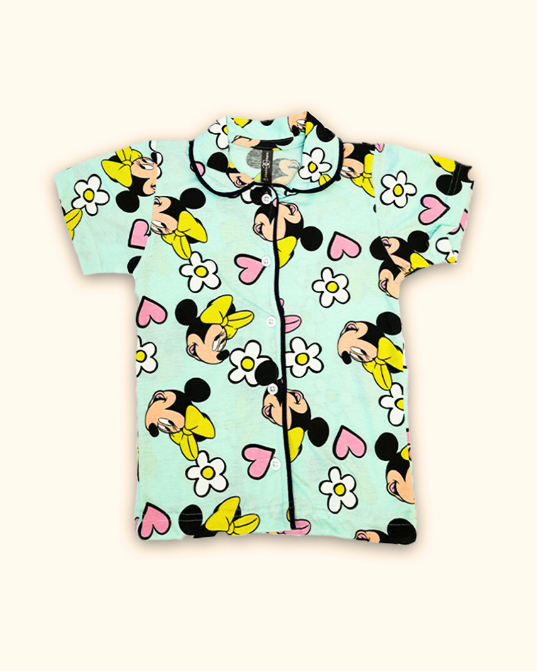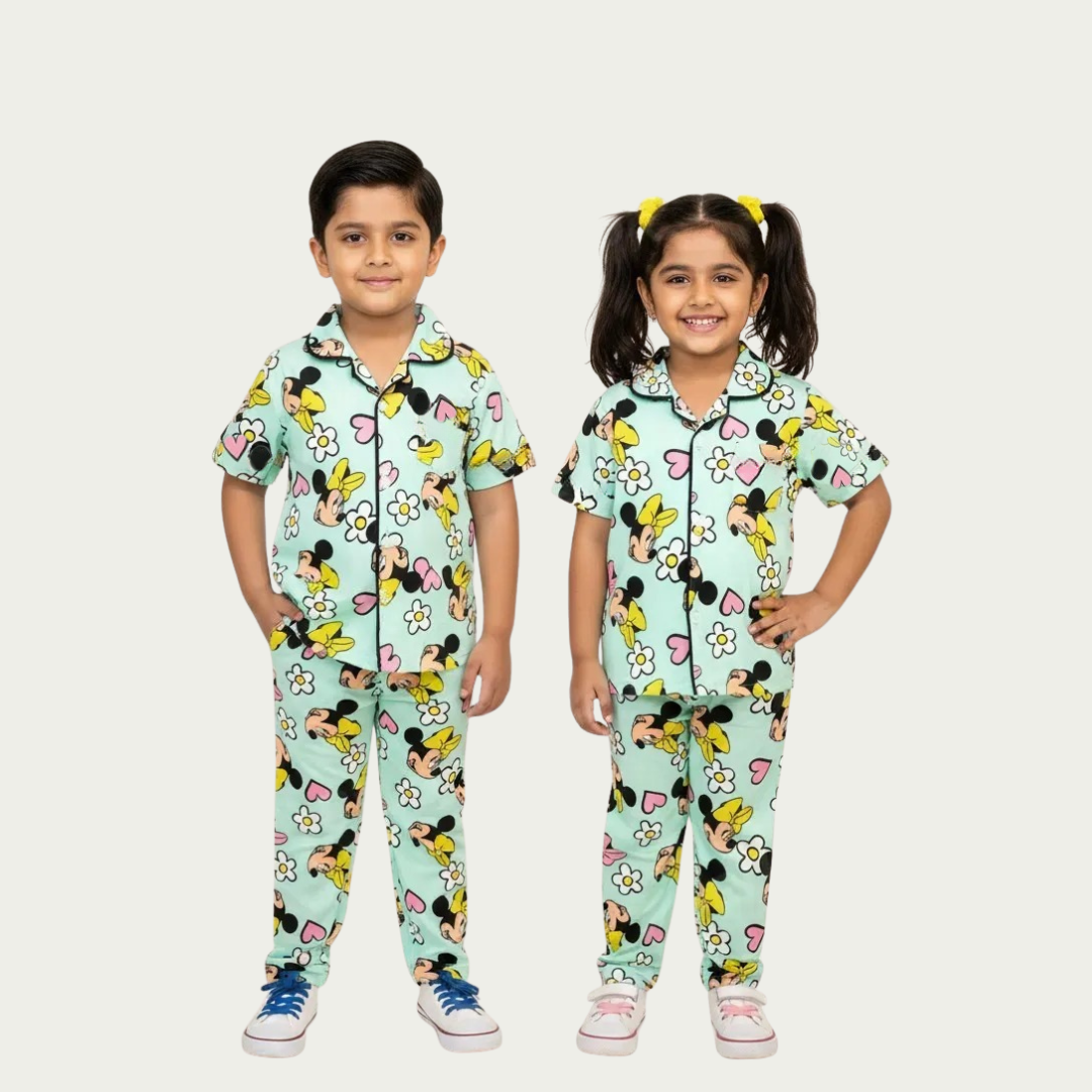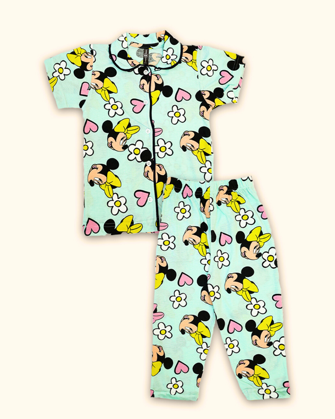 Pastel Mickey Kids Night Suit - Half Sleeve Shirt and Full Pant
