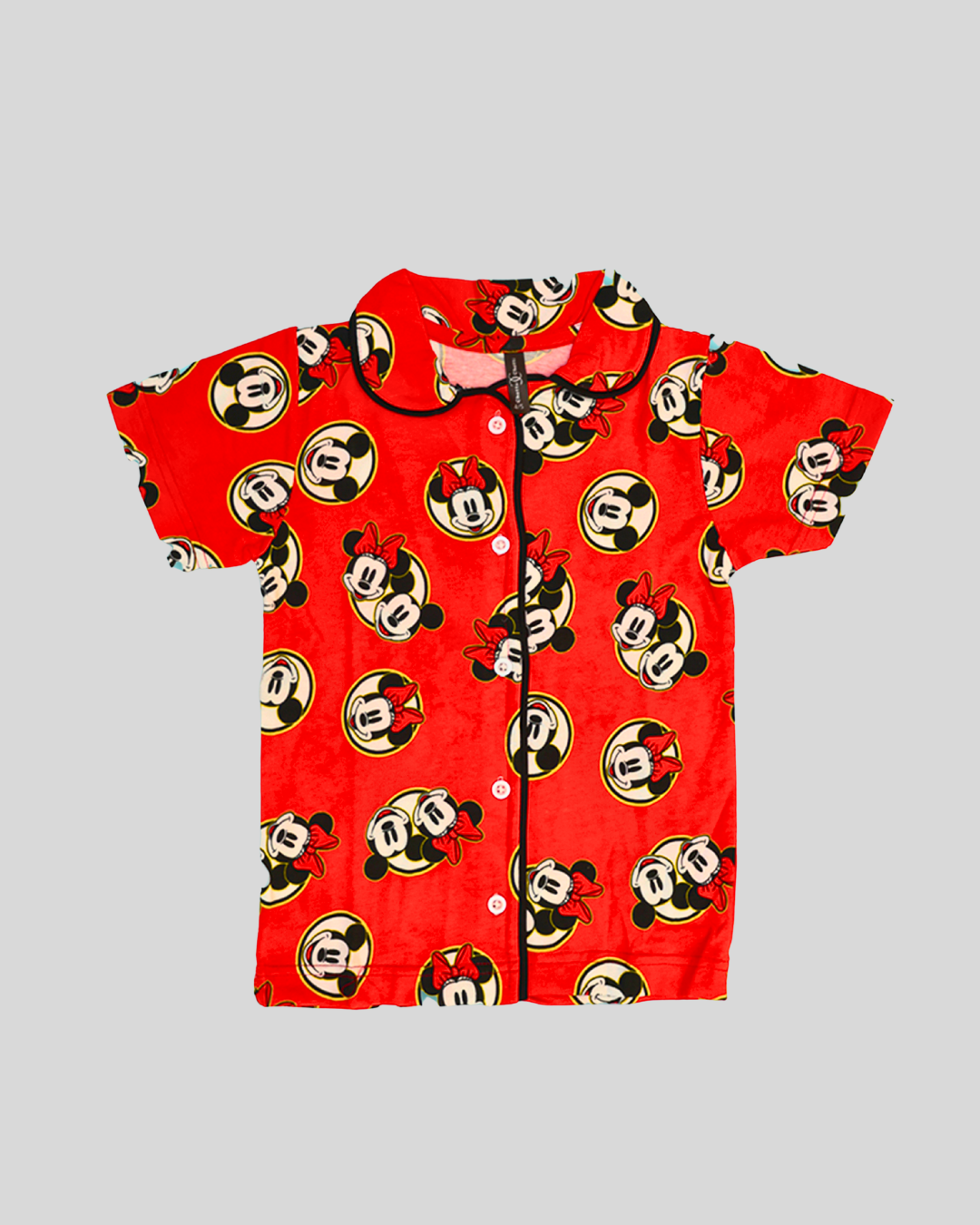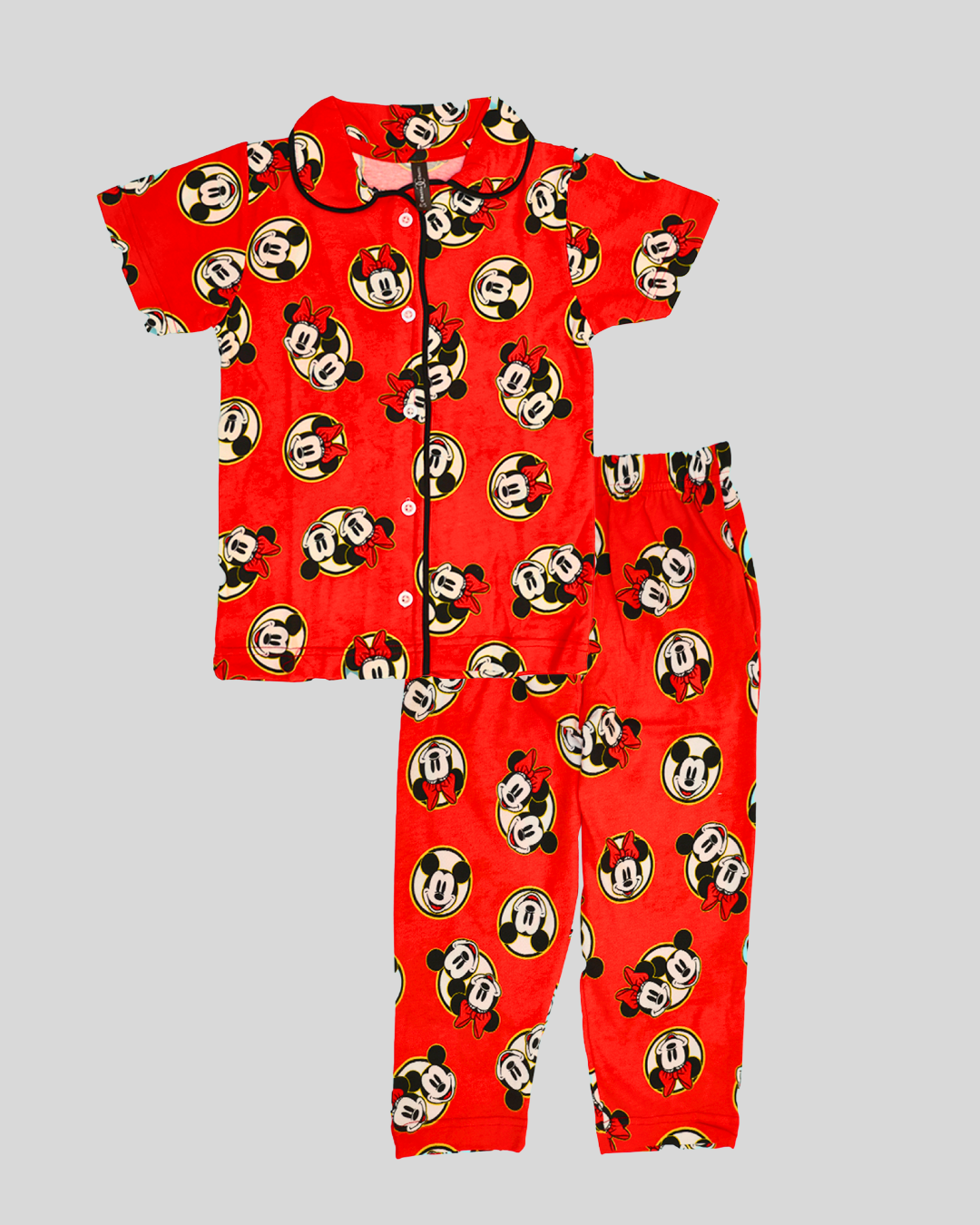 Red Mickey Kids Night Suit - Half Sleeve Shirt and Full Pant