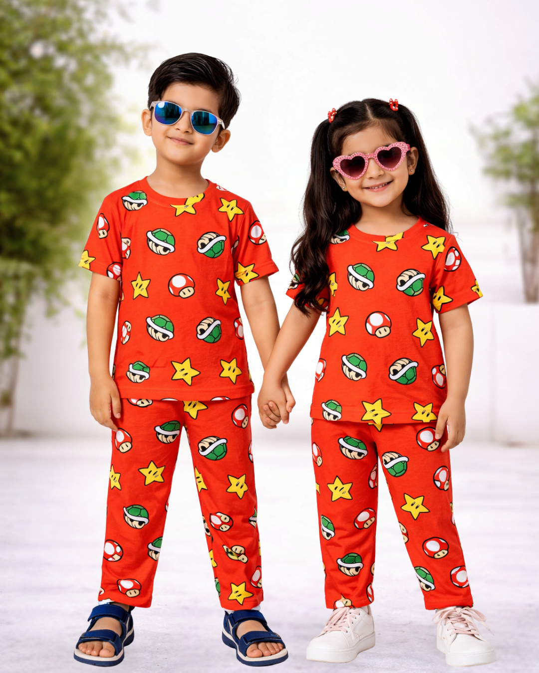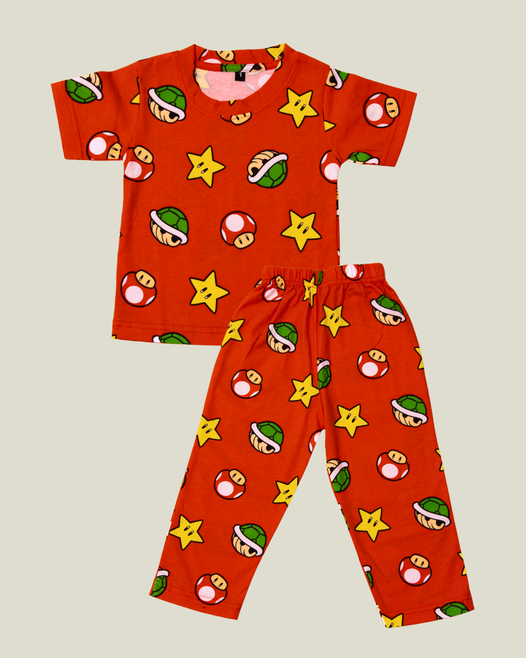Super Mario Print Kids Coords (Unisex) - Half Sleeve T-Shirt and Full Pant