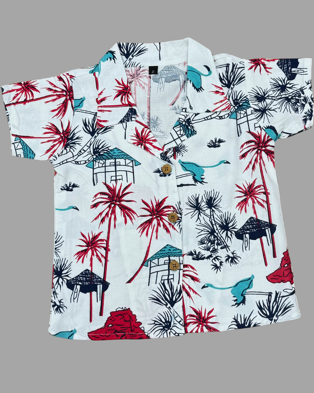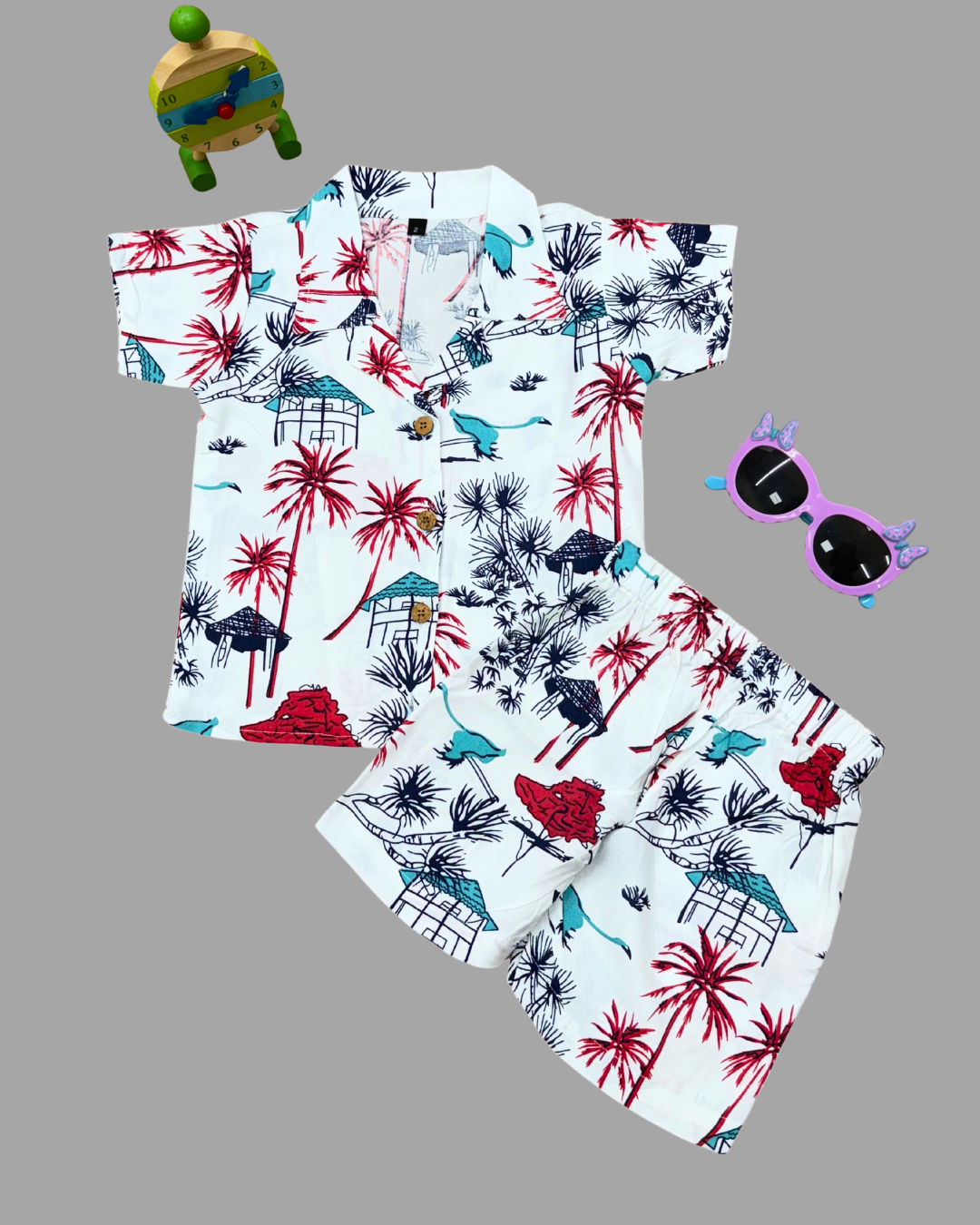 Tropical Hut Tree Boys Printed Half Sleeve Shirt with Shorts | Cuban Collar Shirt & Shorts Set | Dispatch Date Oct 06